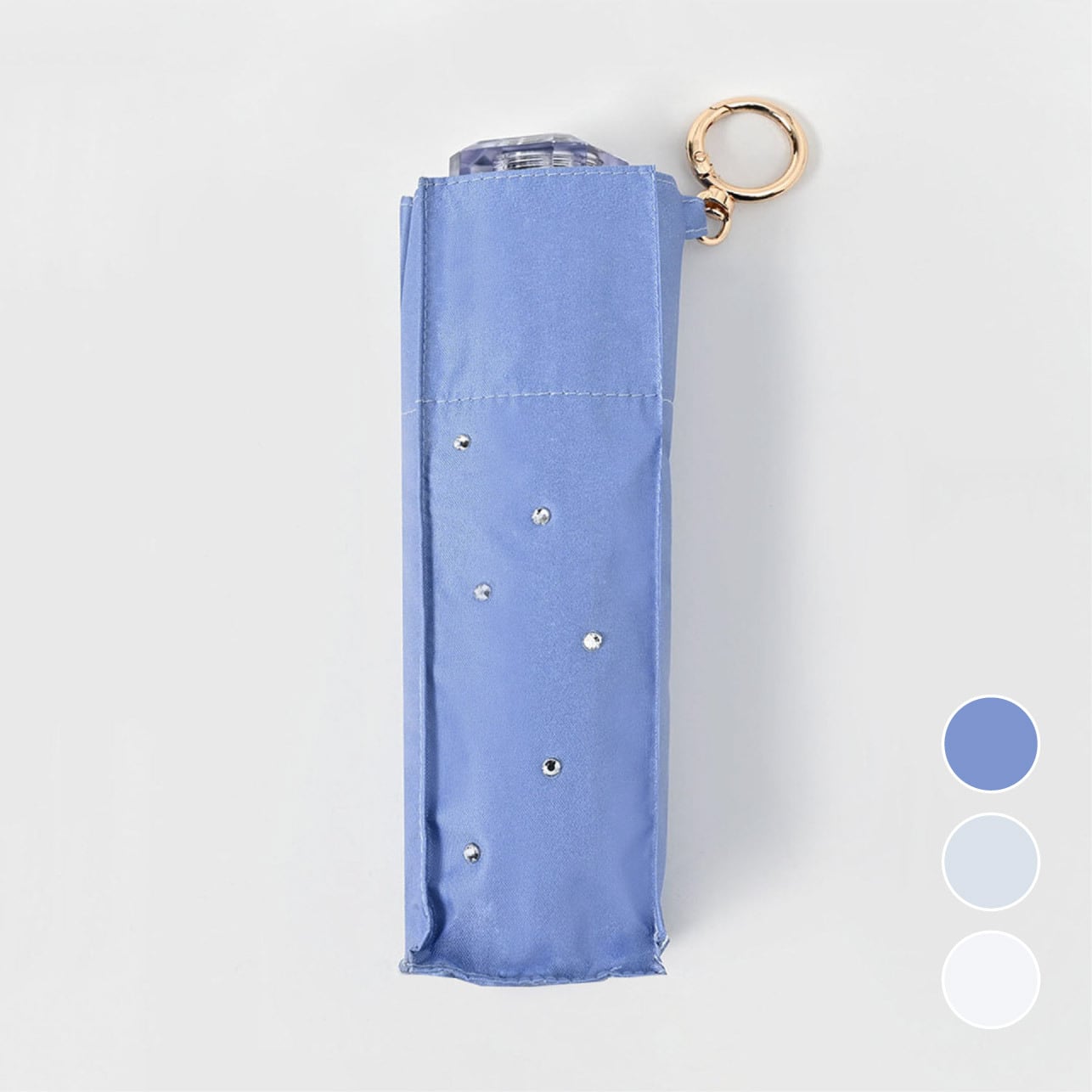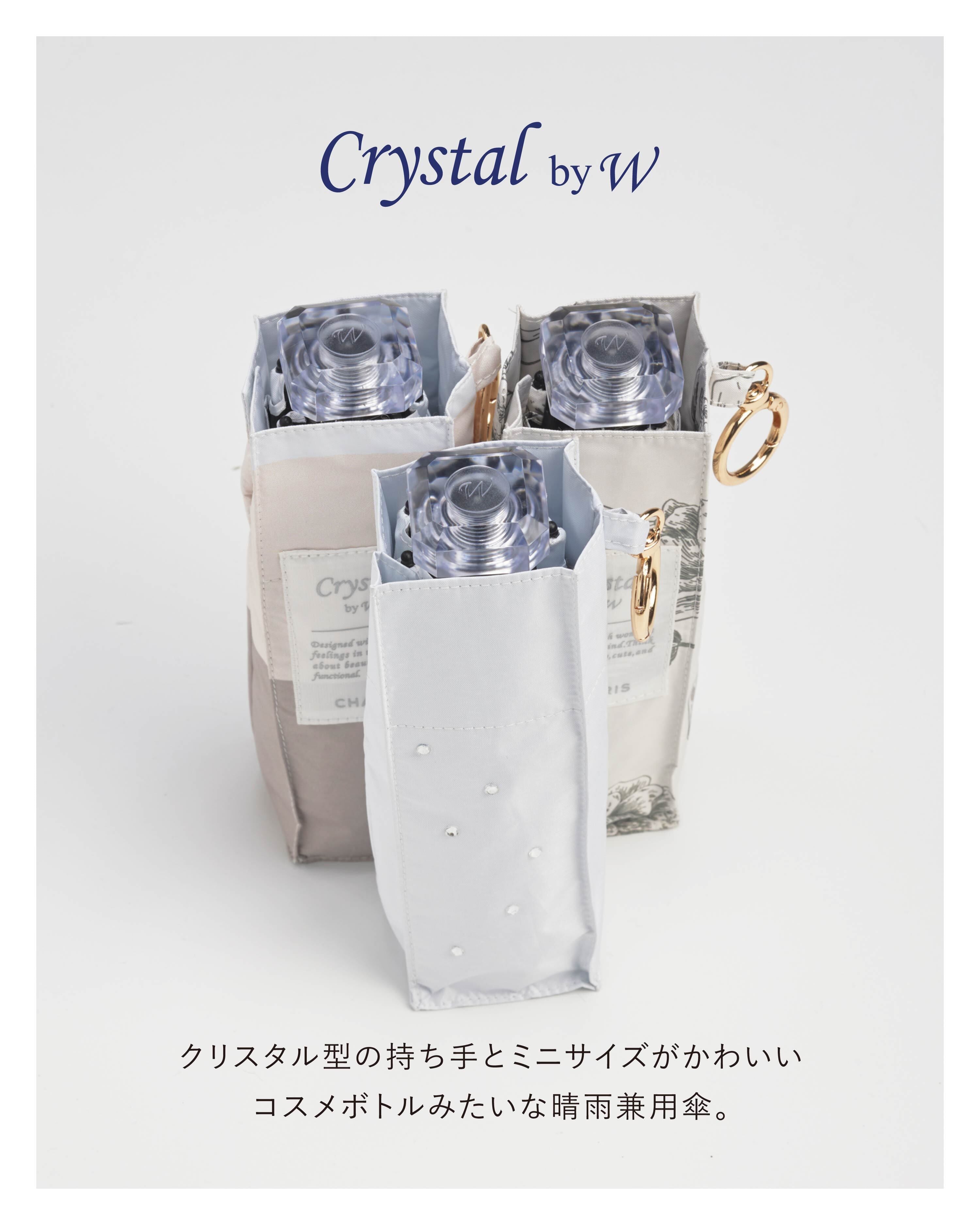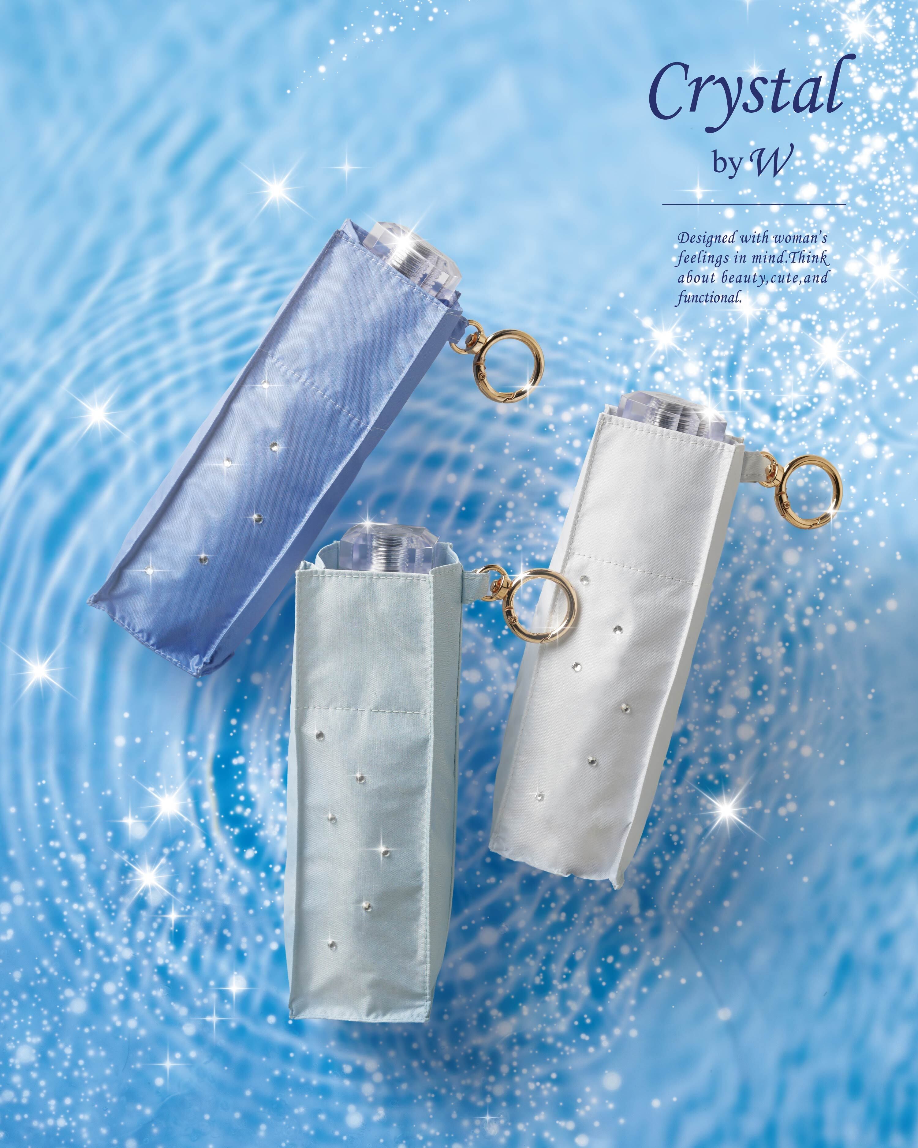 クリスタル型の持ち手とスクエアのフォルムが まるでコスメボトルみたいな折りたたみ傘。 カラビナでバッグ等に取り付け可能。 遮光・UVカット率ともに100%生地使用。 series:Crystal by W 3color:Blue , Baby blue , White Material:polyester 100% Size:50cm Type:puchimini