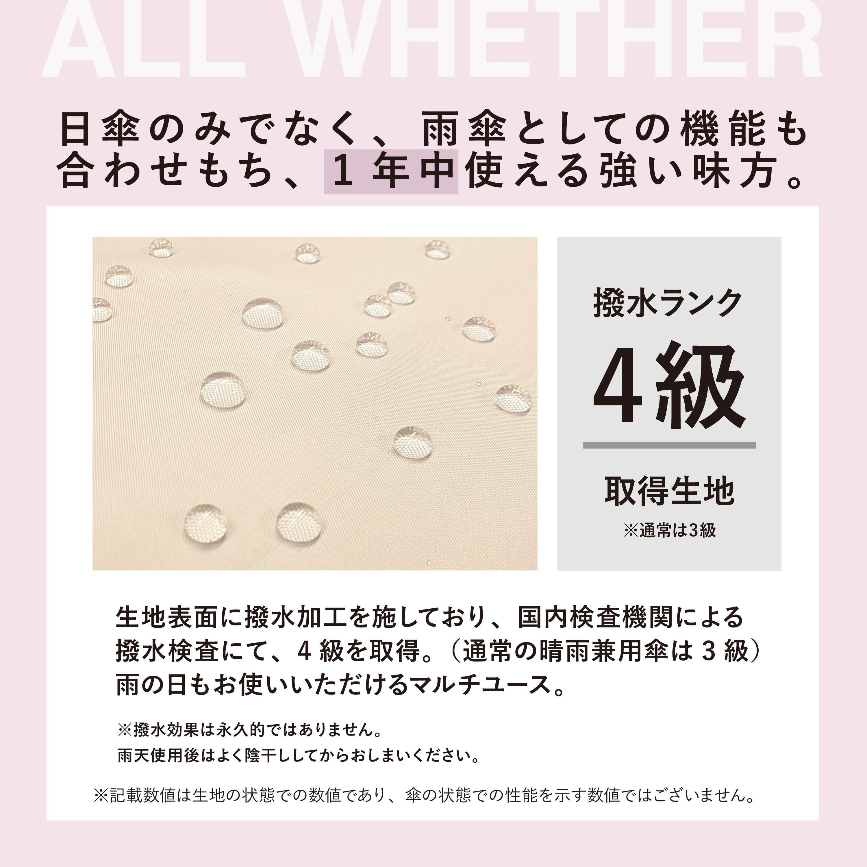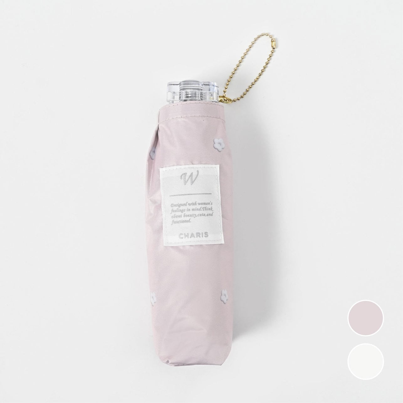 クリアのお花型の持ち手とミニサイズが まるでコスメボトルみたいな折りたたみ傘。 遮光・UVカット率ともに100%生地使用。 series:W -flower- 2color:Ivory , Pink Material:polyester 100% Size:50cm Type:puchimini