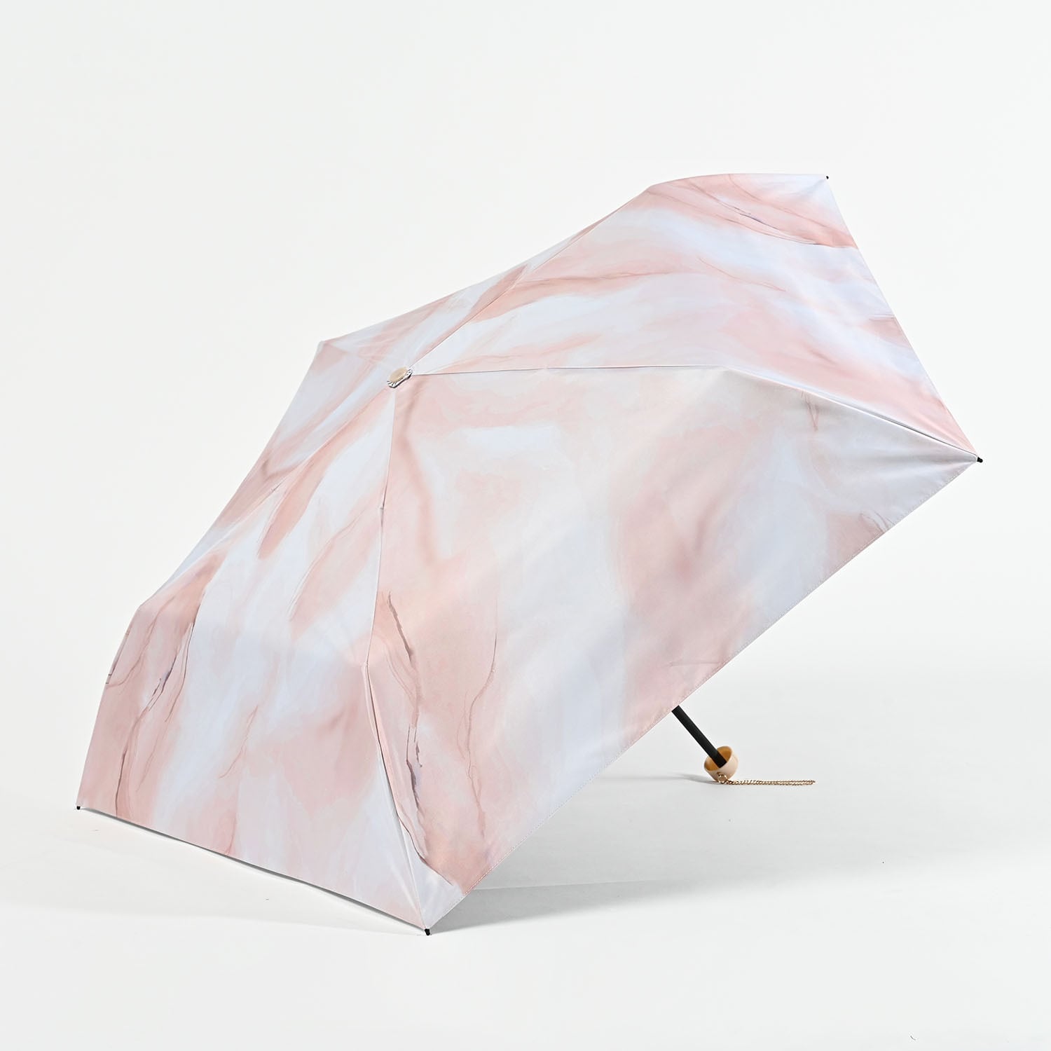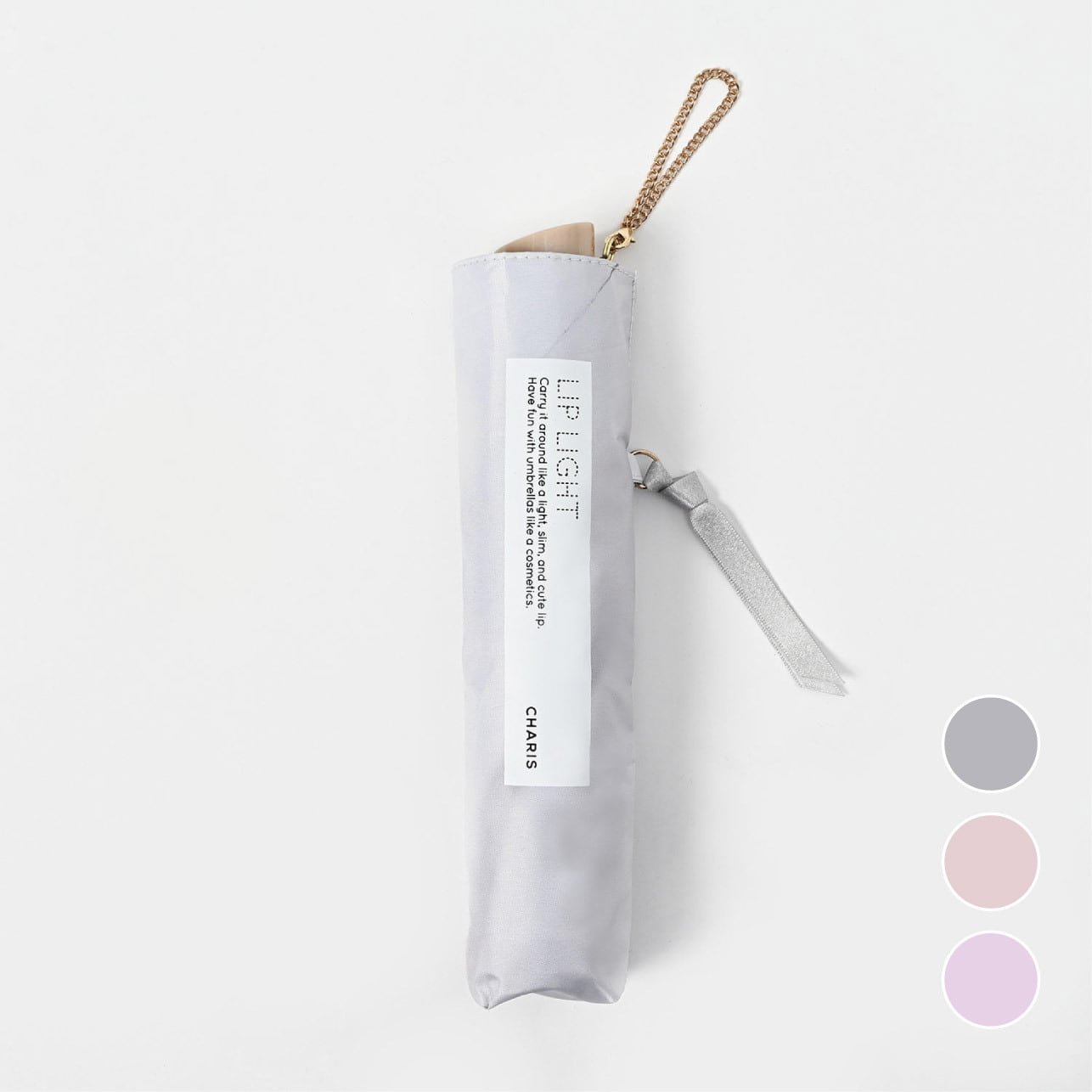 持ち手がリップの断面のカタチをした軽量傘。 遮光・UVカット率ともに100%生地使用。 series:LIP LIGHT 3color:Gray , Beige , Pink Material:polyester 100% Size:50cm Type:light mini