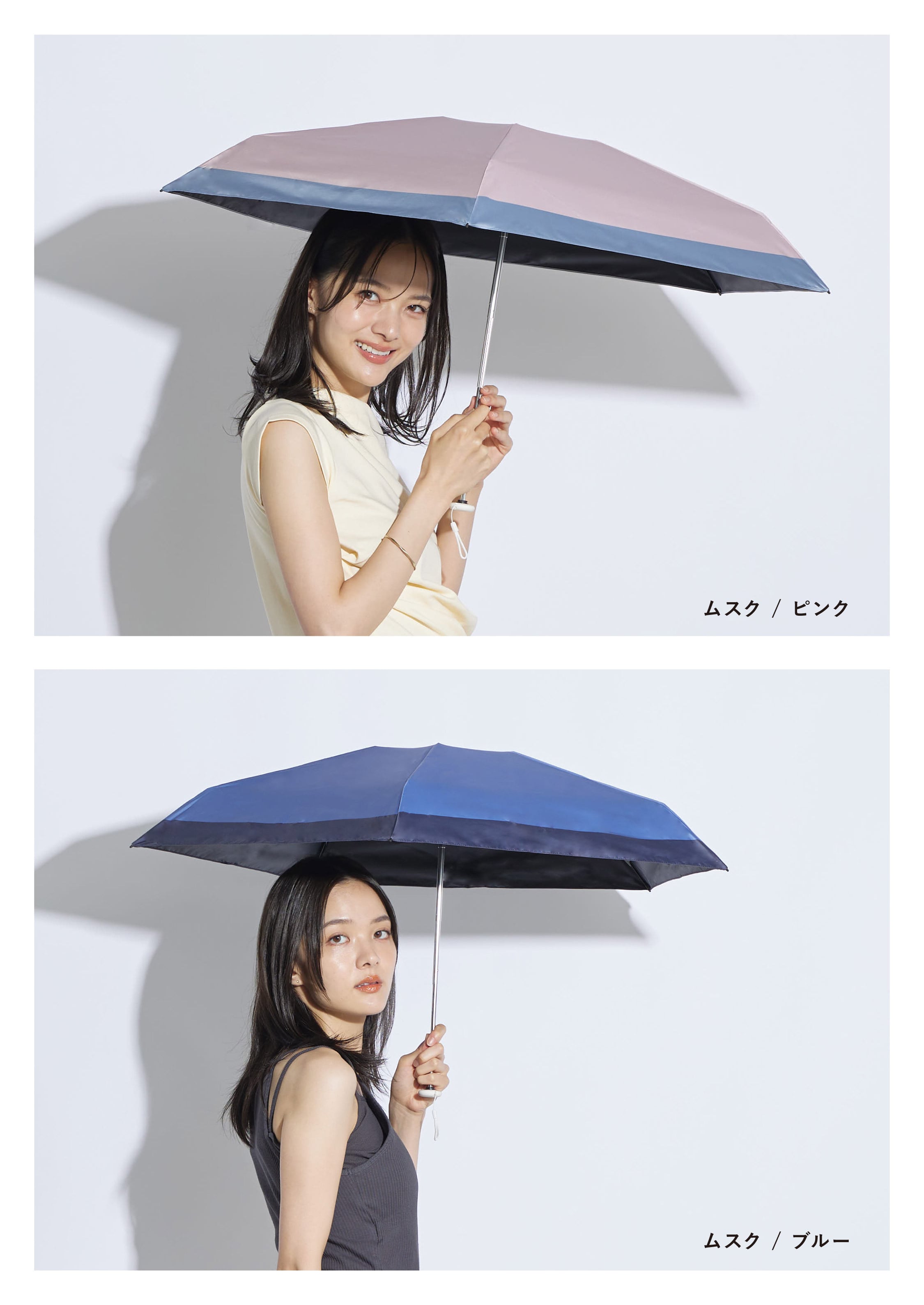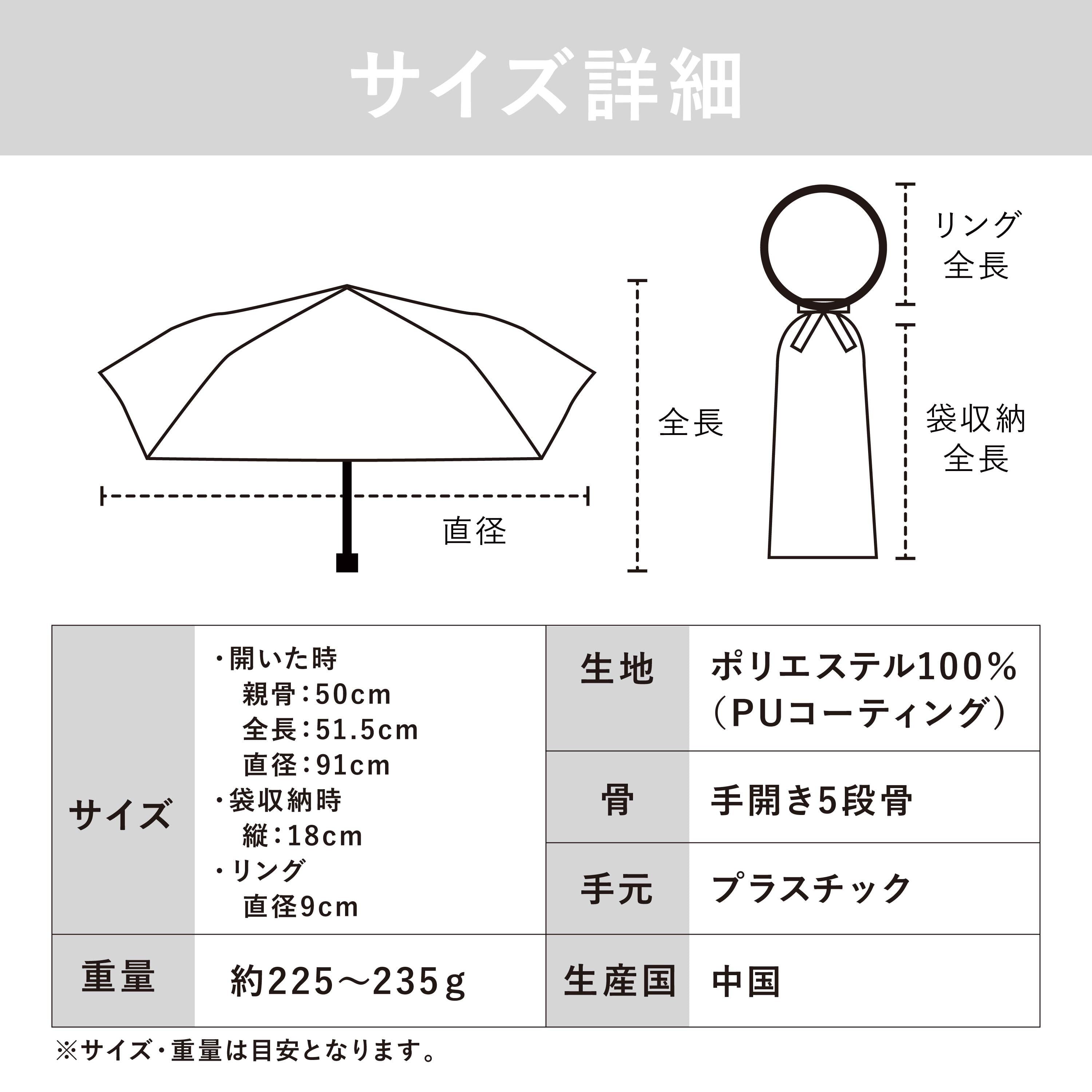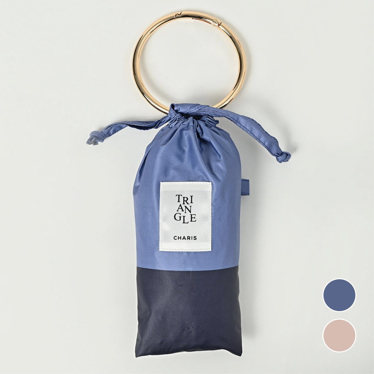 巾着にゴールドリングがついたアクセサリーみたいなパラソル。 腕にかけたり、バッグにつけたり、 ファッショナブルに持ち歩けます。 遮光・UVカット率ともに100%生地使用。 series:TRIANGLE 2color:Blue , Pink Material:polyester 100% Size:50cm Type:puchimini
