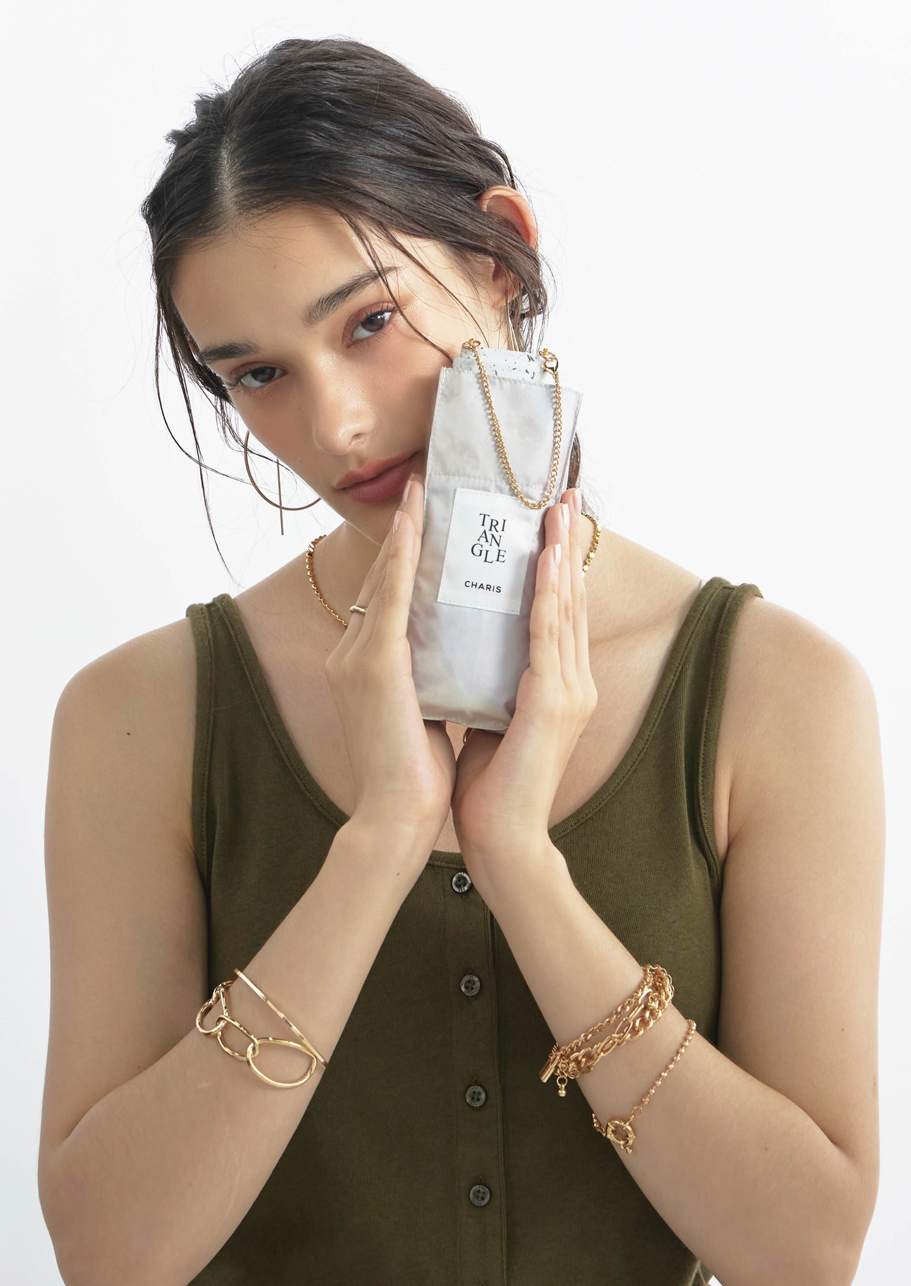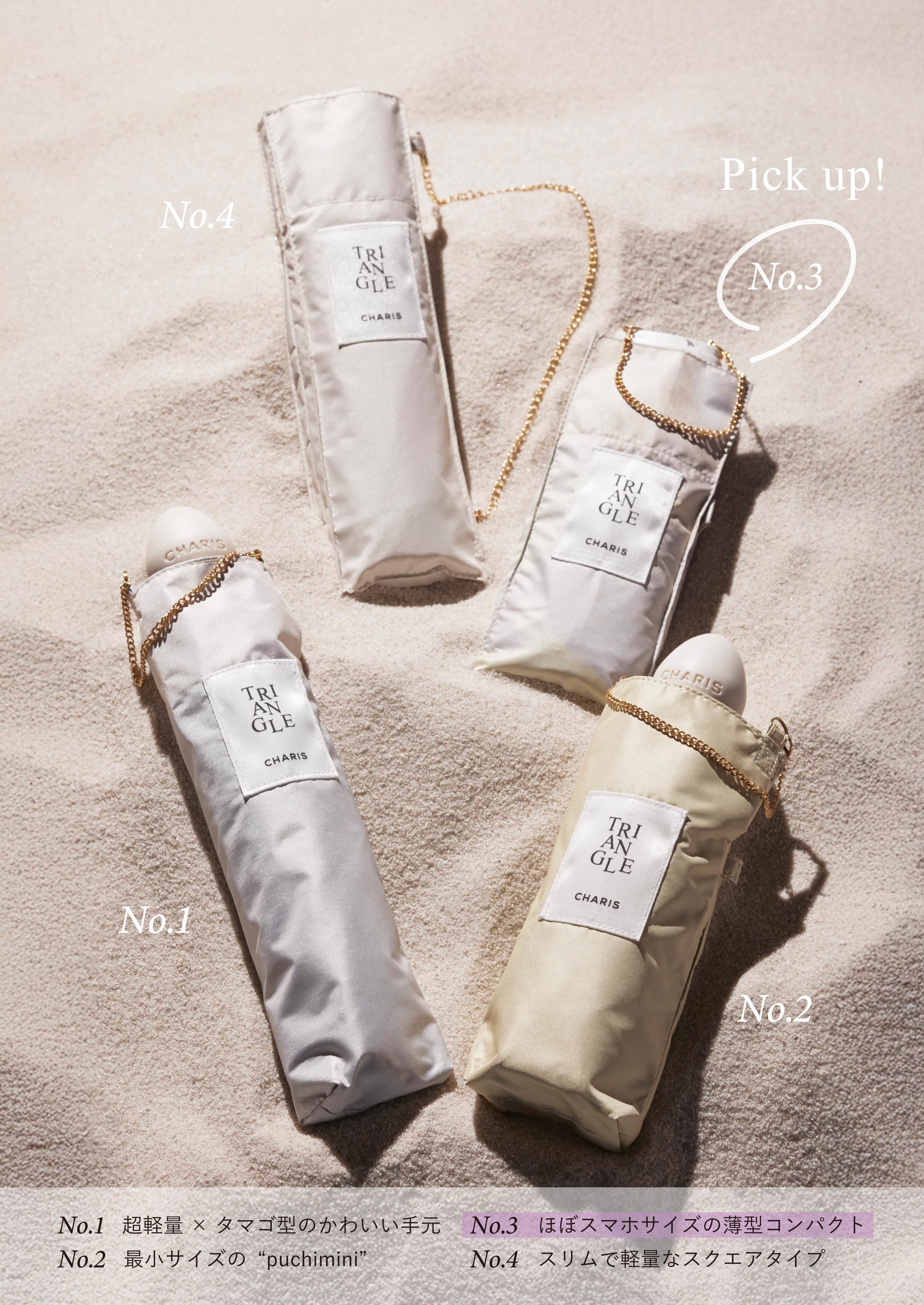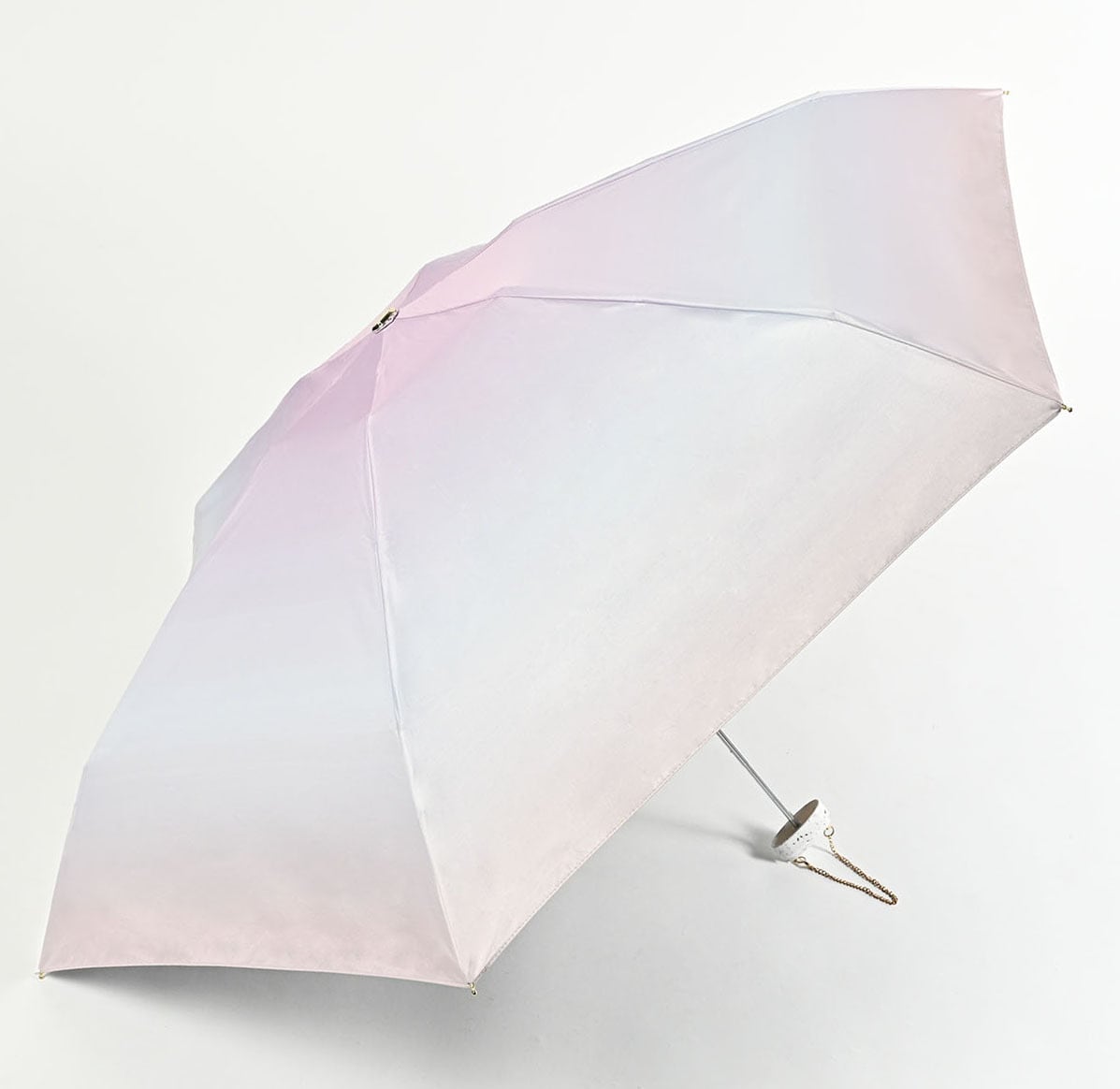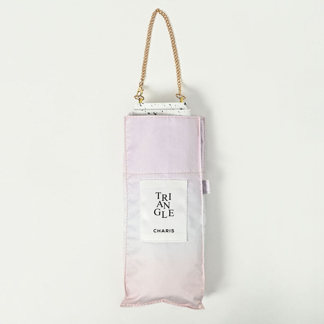 持ち手にチェーンが付いたアクセサリーみたいなパラソル。 超コンパクトサイズでバッグに取り付け可能。 遮光・UVカット率ともに100%生地使用。 series:TRIANGLE 2color:Green , Pink Material:polyester 100% Size:50cm Type:square compact mini