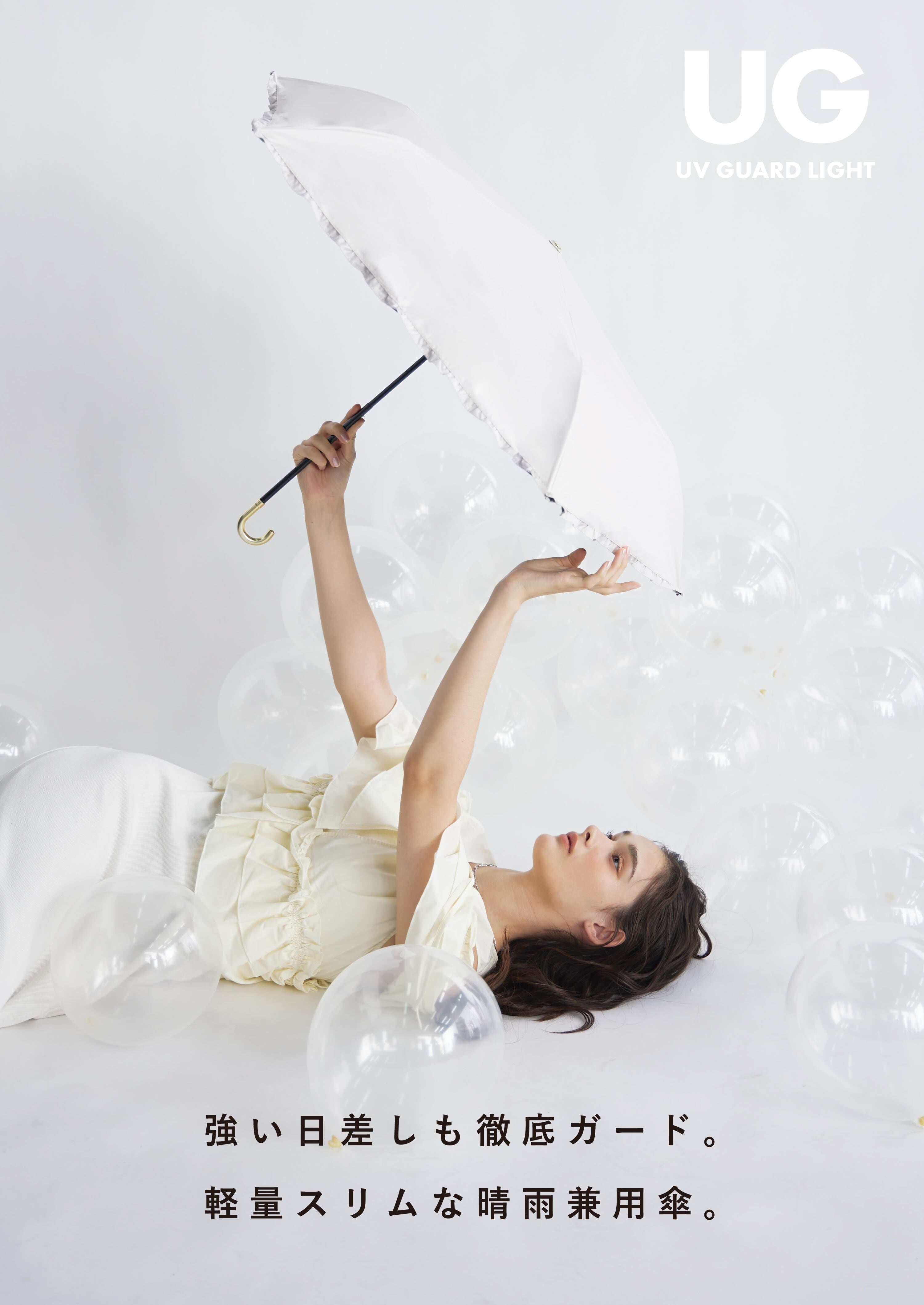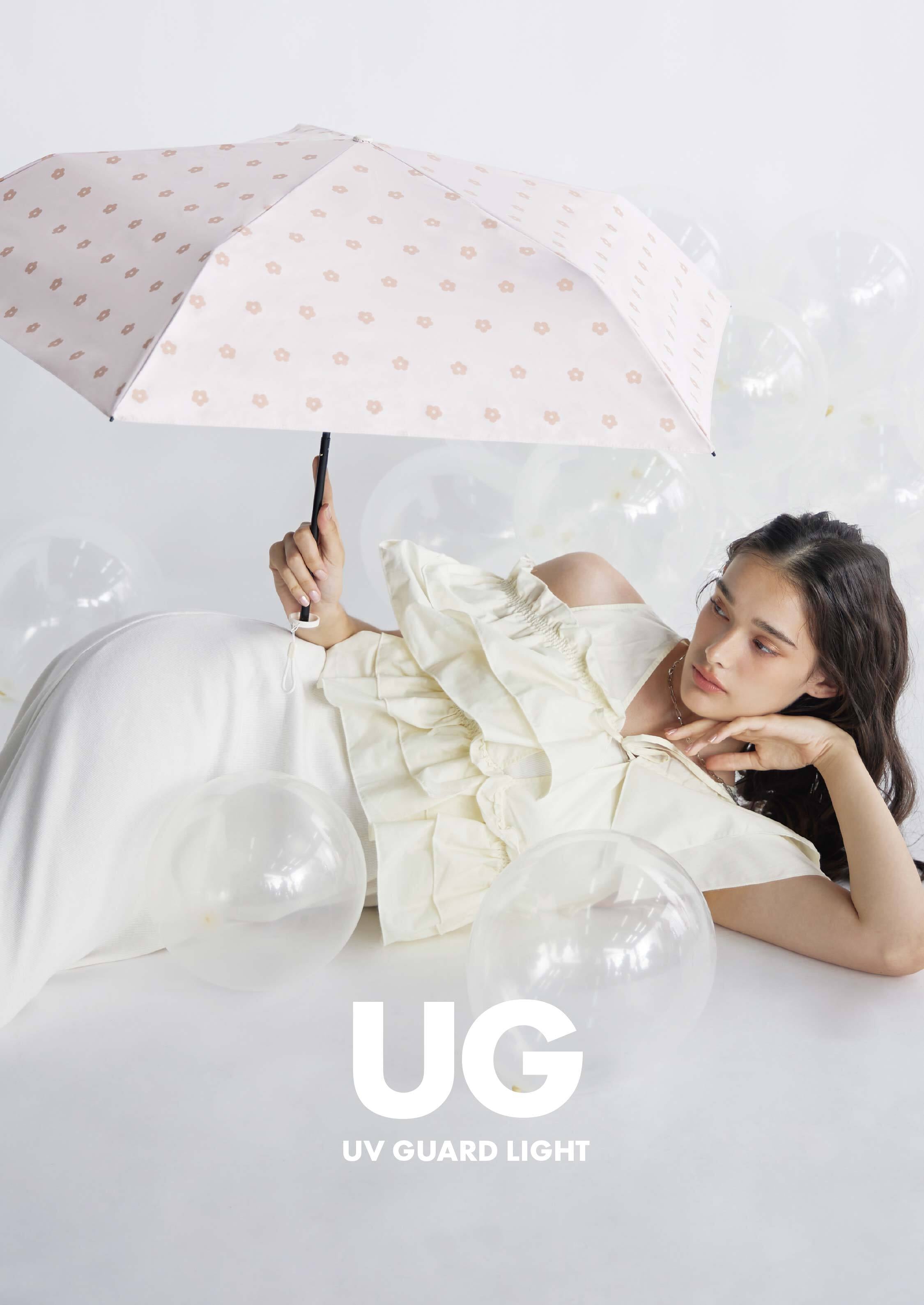 軽量骨を採用したシリーズ。 袋のロゴテープがアクセント。 遮光・UVカット率ともに100%生地使用。 series:UG 3color:Blue , Pinkbeige , Ivory Material:polyester 100% Size:50cm Type:light mini