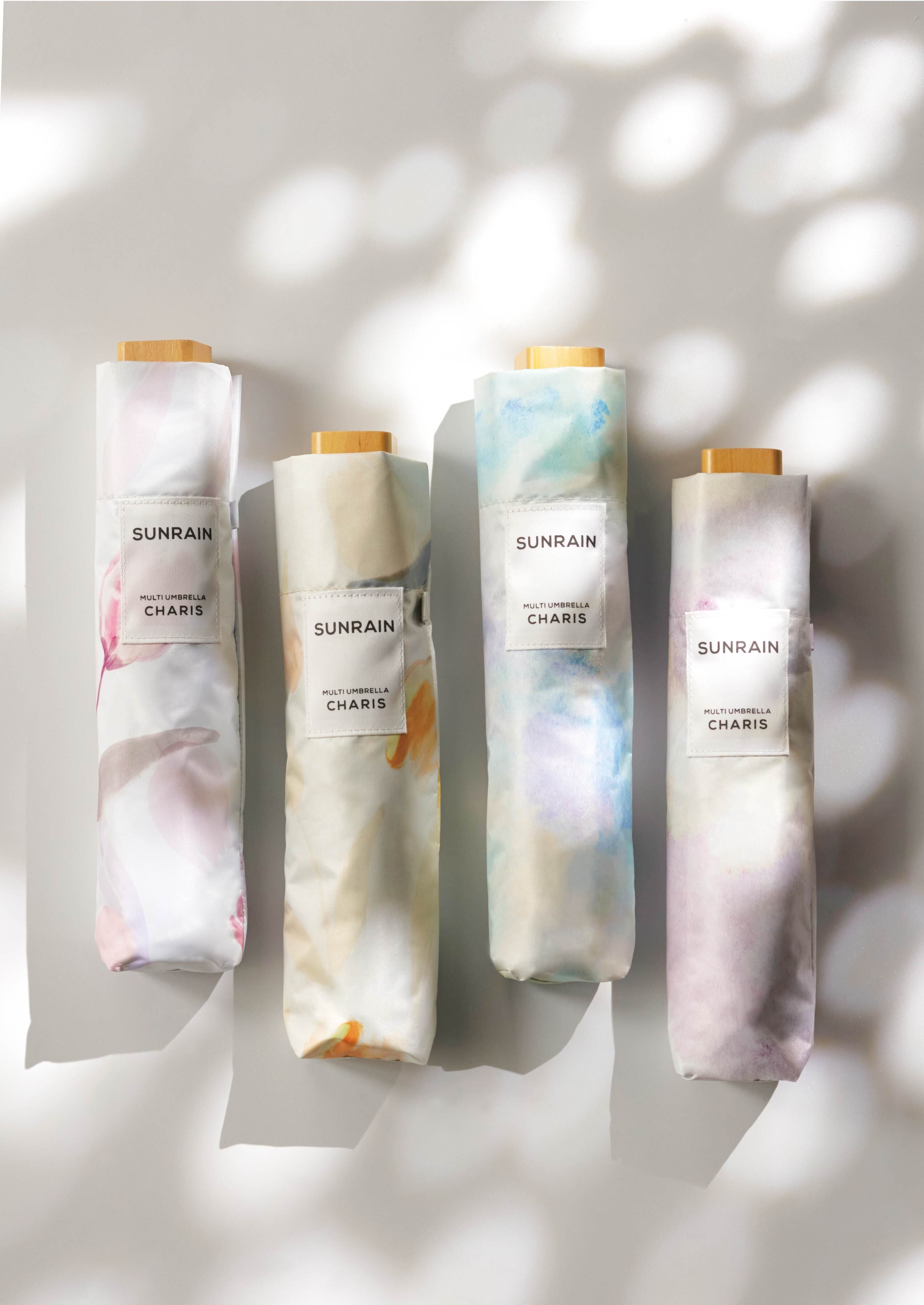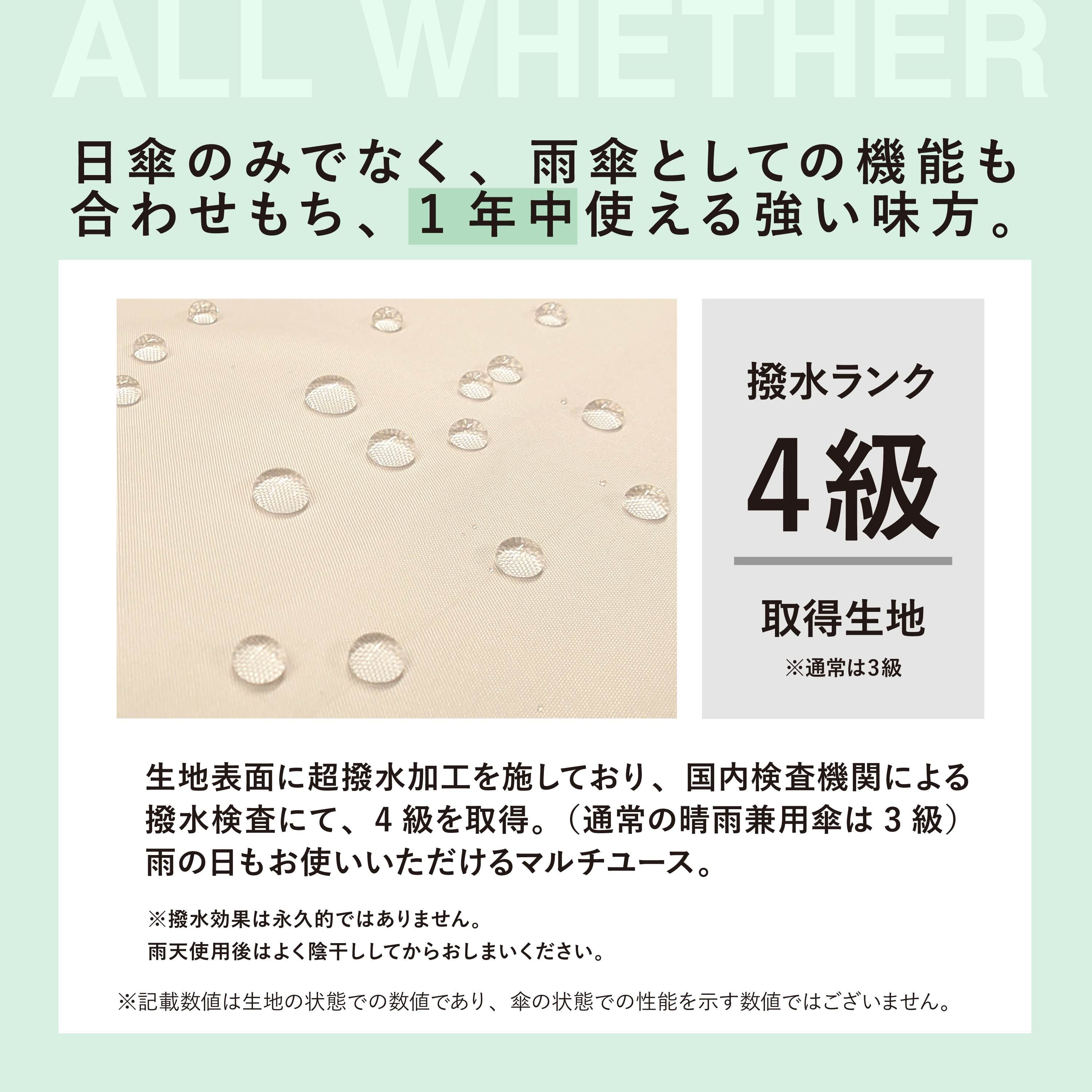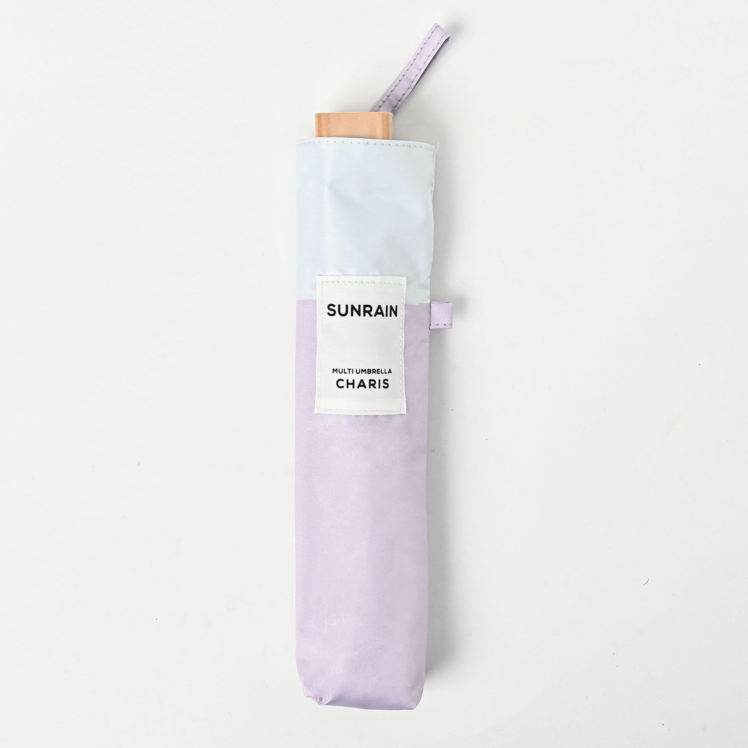木の持ち手がナチュラルな印象を与える軽量傘。 生地表面に超撥水加工を施しているので雨の日にも最適。 遮光・UVカット率ともに100%生地使用。 series:SUNRAIN 4color:Purple , Pink , Green , White Material:polyester 100% Size:50cm Type:light mini