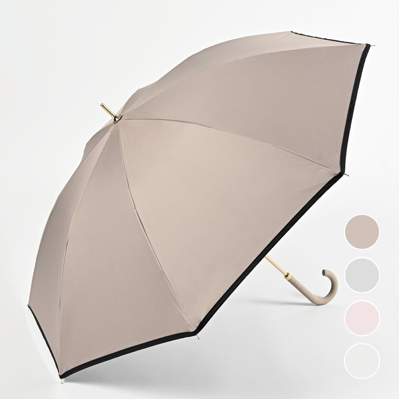 遮熱効果に特化した特殊加工生地使用で 遮熱率約58%、マイナス20度を実証。 高級感のあるゴールドの中棒と大きめサイズがポイント。 遮光・UVカット率ともに100%生地使用。 series:CUDA 4color:Mocha , Bluegray , Pink , Ivory Material:polyester 100% Size:55cm Type:long