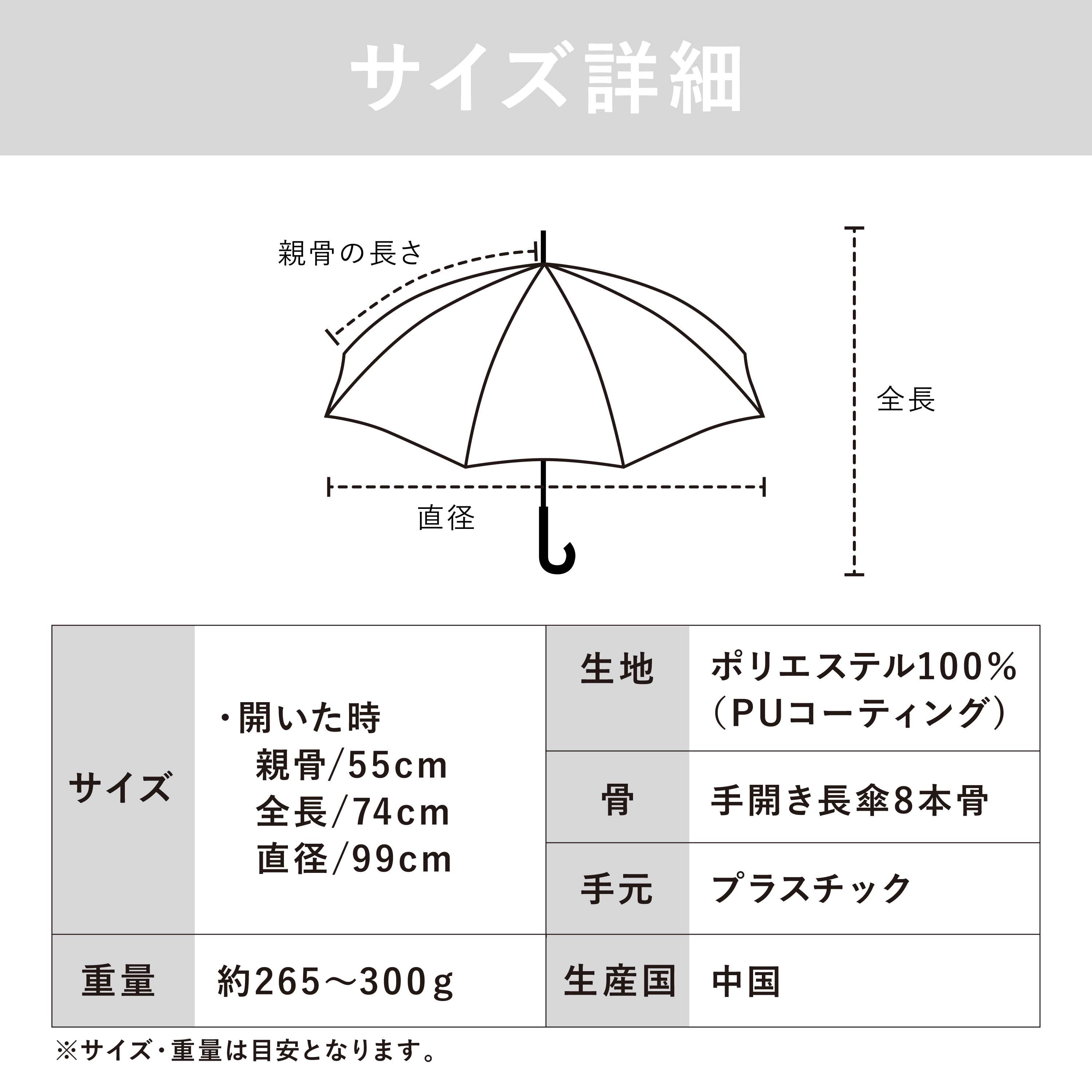遮熱効果に特化した特殊加工生地使用で 遮熱率約58%、マイナス20度を実証。 高級感のあるゴールドの中棒と大きめサイズがポイント。 遮光・UVカット率ともに100%生地使用。 series:CUDA 2color:Ivory , Mocha Material:polyester 100% Size:55cm Type:long
