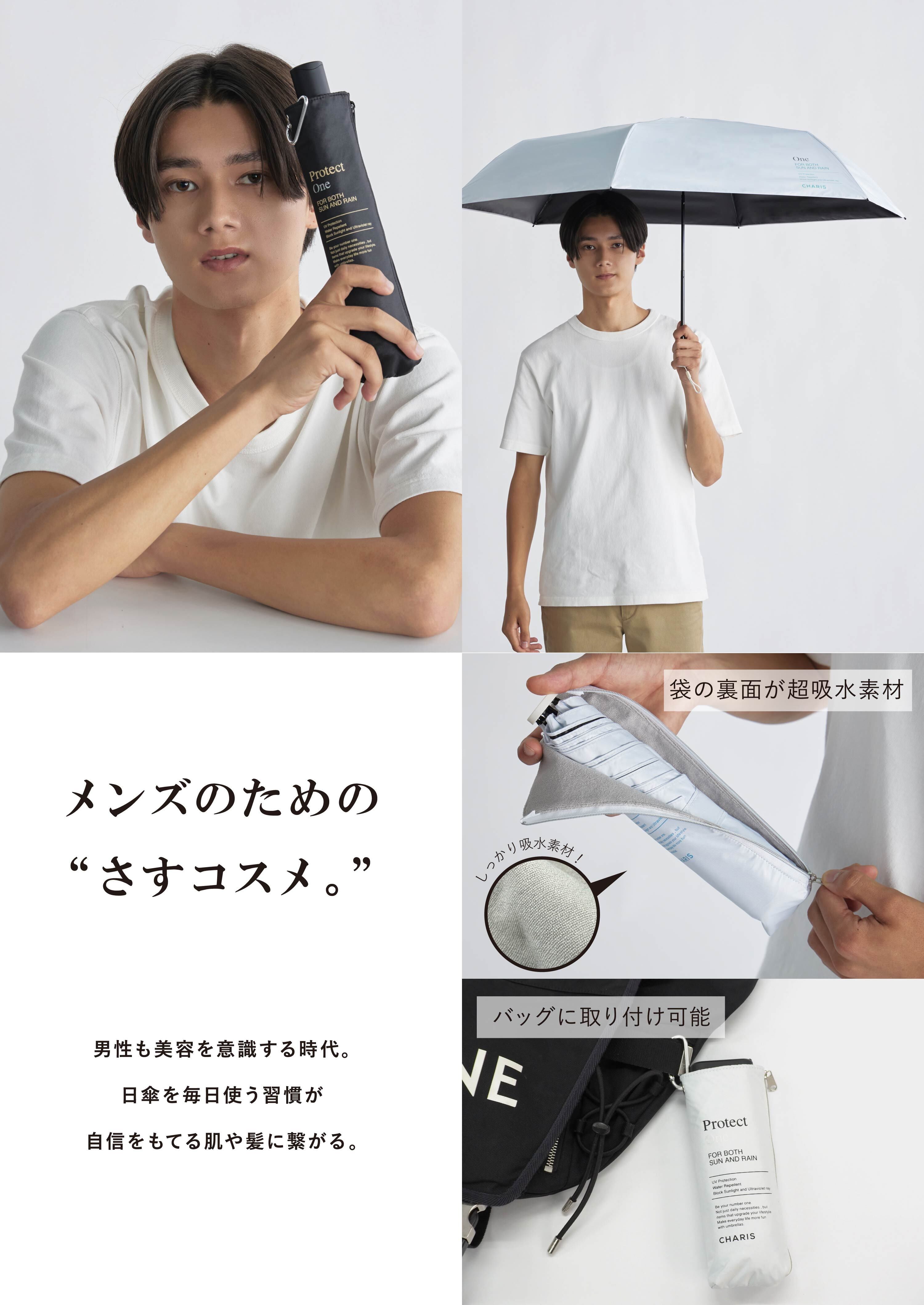 "メンズのさすコスメ"がコンセプトの 高機能晴雨兼用傘。 遮光・UVカット率100%に加え、強力撥水、吸水ケースつきの袋を採用。 自動開閉傘なのに超軽量を実現。 series:Protect One 4color:AQUA , DARK , MINT , MONOTONE Material:polyester 100% Size:55cm Type:automatic mini